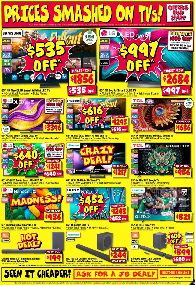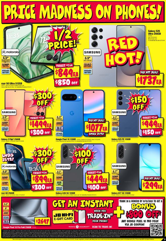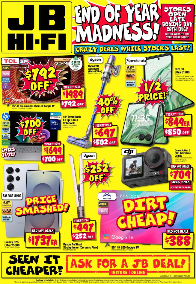 Save money with JB Hi-Fi Specials. Don't miss the specials on offer now from JB Hi-Fi by checking out the JB Hi-Fi catalogue valid from 26 décembre until 01 janvier. View the weekly JB Hi-Fi catalogue to see this week's specials valid from 26 décembre until 01 janvier. Share your opinion about the products you love and bought in JB Hi-Fi. Browse the latest catalogue and offers of all your favourite stores and dont forget to subscribe to our newsletter to receive exclusive offers and the latest catalogues directly on your mail.