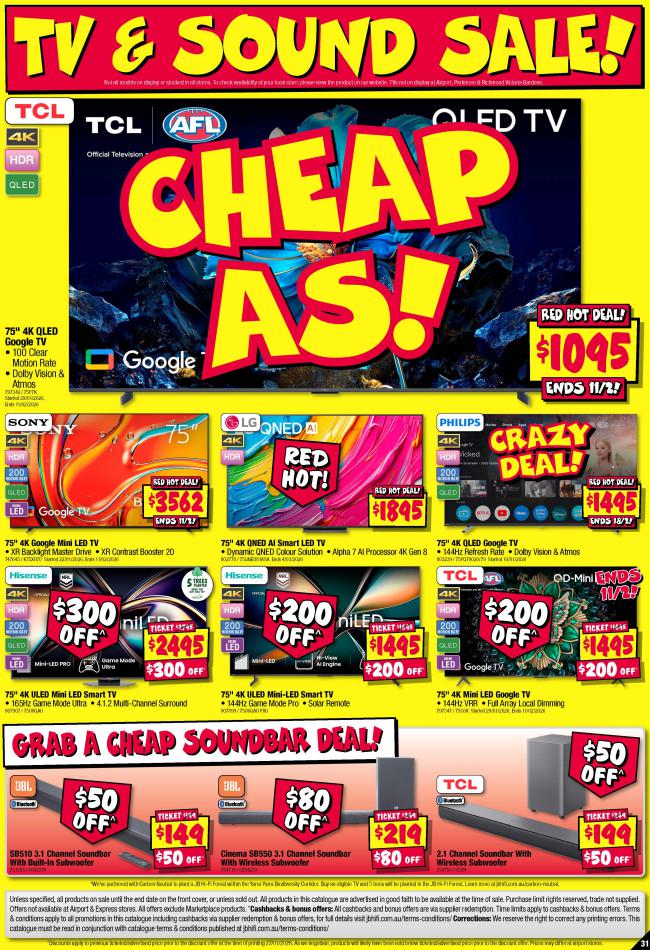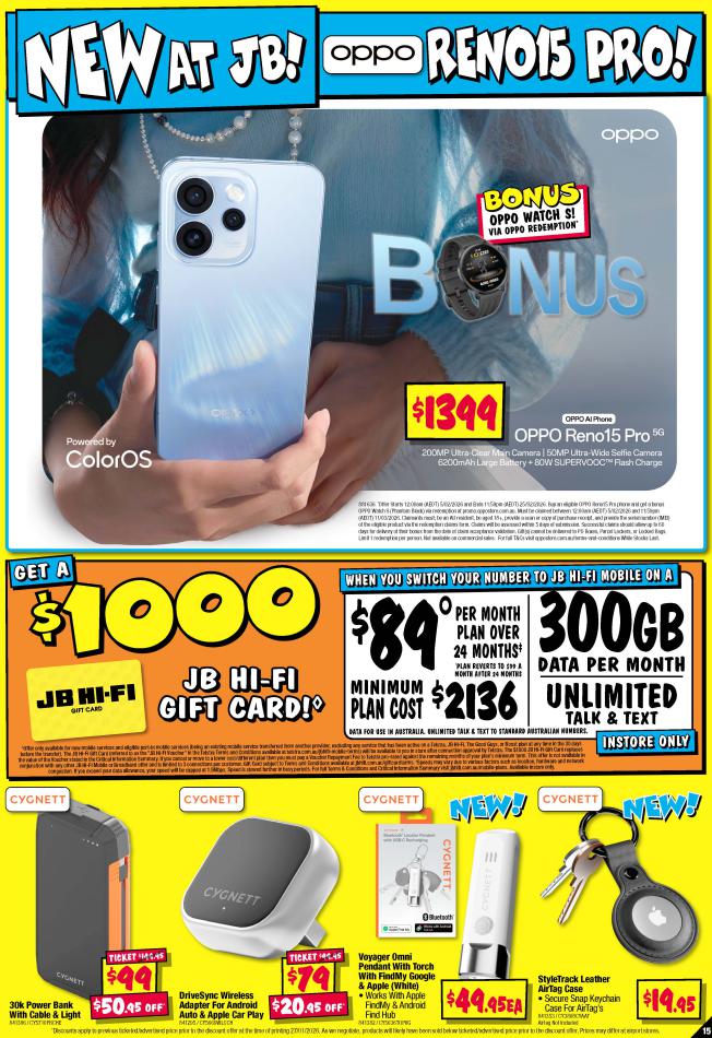 Save money with JB Hi-Fi Specials. Don't miss the specials on offer now from JB Hi-Fi by checking out the JB Hi-Fi catalogue valid from 05 février until 18 février. View the weekly JB Hi-Fi catalogue to see this week's specials valid from 05 février until 18 février. Share your opinion about the products you love and bought in JB Hi-Fi. Browse the latest catalogue and offers of all your favourite stores and dont forget to subscribe to our newsletter to receive exclusive offers and the latest catalogues directly on your mail.