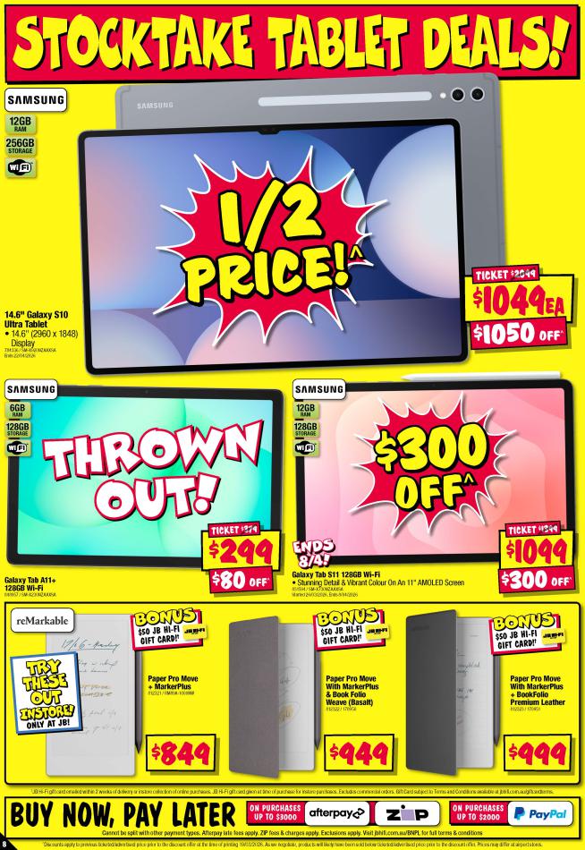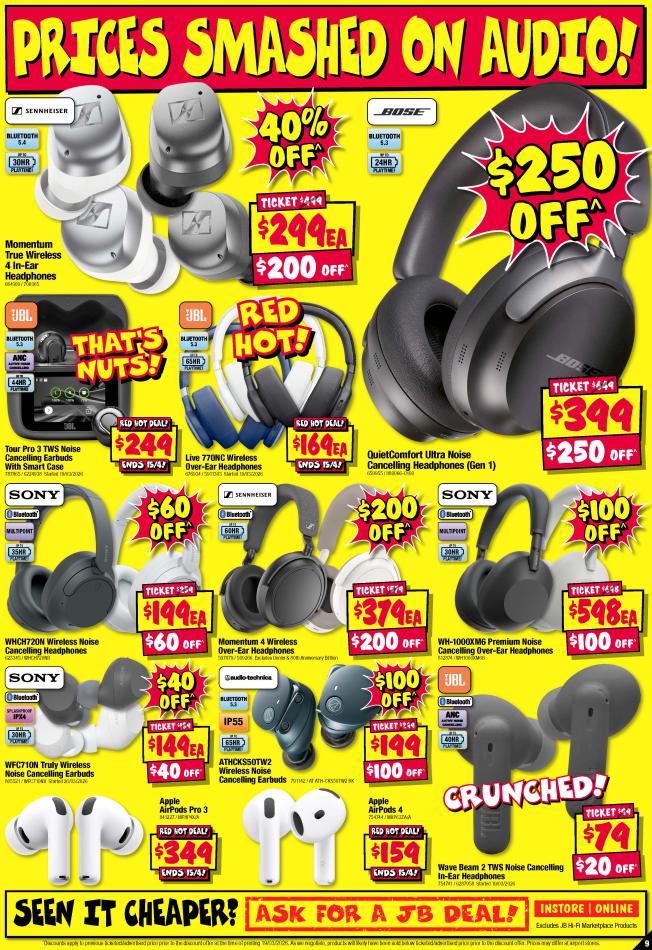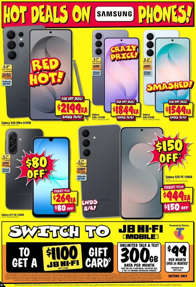 Save money with JB Hi-Fi Specials. Don't miss the specials on offer now from JB Hi-Fi by checking out the JB Hi-Fi catalogue valid from 02 avril until 15 avril. View the weekly JB Hi-Fi catalogue to see this week's specials valid from 02 avril until 15 avril. Share your opinion about the products you love and bought in JB Hi-Fi. Browse the latest catalogue and offers of all your favourite stores and dont forget to subscribe to our newsletter to receive exclusive offers and the latest catalogues directly on your mail.