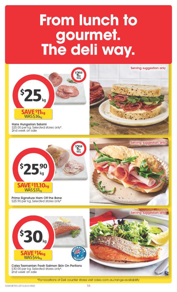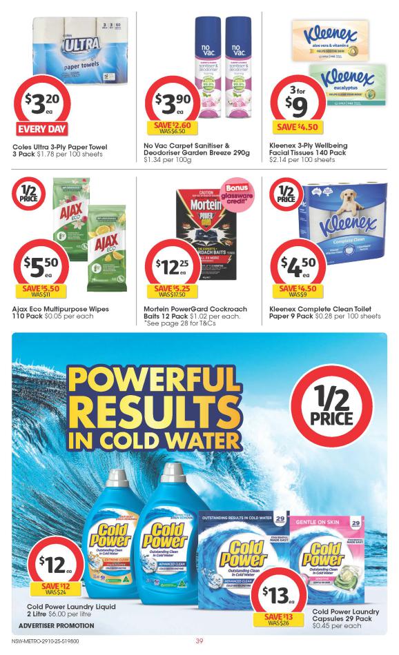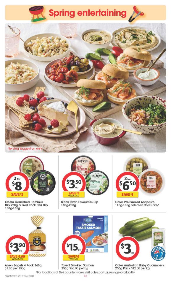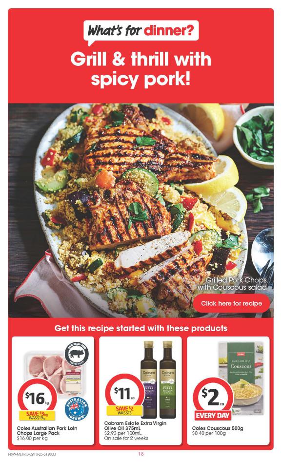 Save money with Coles Specials. Don't miss the specials on offer now from Coles by checking out the Coles catalogue valid from 29 octobre until 04 novembre. View the weekly Coles catalogue to see this week's specials valid from 29 octobre until 04 novembre. Share your opinion about the products you love and bought in Coles. Browse the latest catalogue and offers of all your favourite stores and dont forget to subscribe to our newsletter to receive exclusive offers and the latest catalogues directly on your mail.