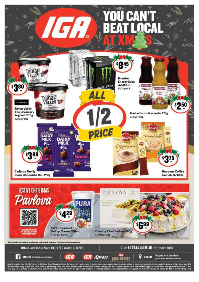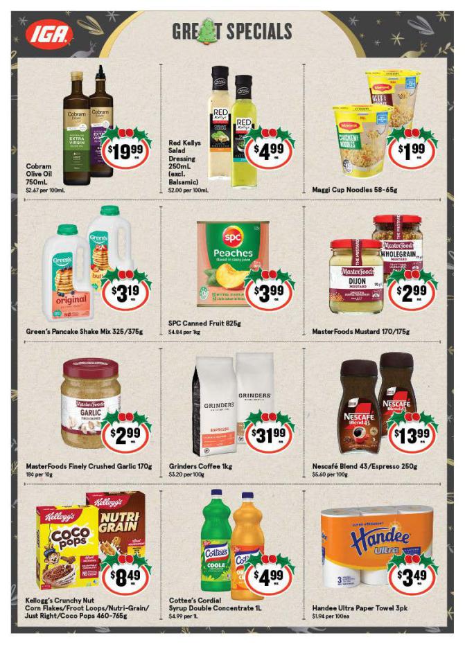 Save money with iga Specials. Don't miss the specials on offer now from iga by checking out the iga catalogue valid from 10 décembre until 16 décembre. View the weekly iga catalogue to see this week's specials valid from 10 décembre until 16 décembre. Share your opinion about the products you love and bought in iga. Browse the latest catalogue and offers of all your favourite stores and dont forget to subscribe to our newsletter to receive exclusive offers and the latest catalogues directly on your mail.